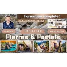 Ma formation PREMIUM est spécialement conçue pour vous permettre de maîtriser l'art délicat et fascinant de représenter tous types de roches au pastel sec. Que vous souhaitiez peindre des montagnes majestueuses, des falaises abruptes, des sentiers de campagne bordés de murets ou encore des ruines anciennes, la connaissance des textures, des volumes et des nuances de la pierre vous permettra de capter la force et la présence de ces sujets. Cette maîtrise enrichit la profondeur de vos œuvres et renforce l’impact visuel des paysages, tout en vous ouvrant la porte à une plus grande liberté créative dans l’art du pastel sec.